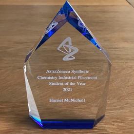 By the end of the placement, many students have developed a strong sense of company identity and feel fully integrated, making significant contributions and excelling in their field. For example, one of our students, Harriet McNicholl who recently did her MChem placement at AstraZeneca, won both National Undergraduate Placement Student of the Year and AstraZeneca Synthetic Chemistry Industrial Placement Student of the Year. Harriet worked at AZ in synthetic organic chemistry on process design for an Acute Myeloid Leukaemia therapeutic.