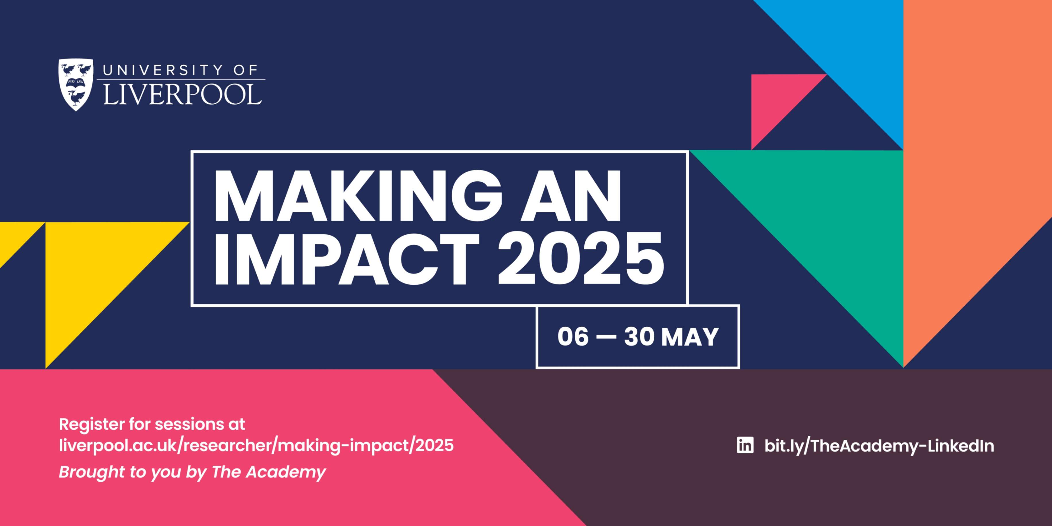 Supplementing the live programme, the Making an Impact Resource Hub contains a rich and diverse open-access resource freely available for all research staff and students to access at a time and place that suits you. The resources include: 200+ recorded sessions, 13 podcasts, 15 visual summaries, 16 keynotes, 55 workshops, 38 webinars, and 7 panel discussions covering the ‘From Liverpool to Impact’ strand in which Liverpool PhD alumni working in various sectors share their experiences and opportunities for research partnership and impact. There are also 50+ additional curated resources (including toolkits, checklists, virtual tours, TED talks) on inclusive leadership; using LinkedIn to foster research collaborations; informational interviews; making a cultural impact online; business development; collaboration and many more areas spread across four general themes according to research impact objectives:
