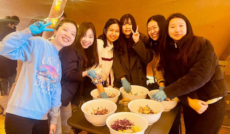 Students learning how to make zero waste sauerkraut with the Fermentation Station