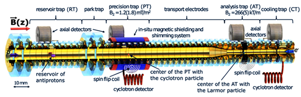 Compared to a proton, antiprotons have the same mass but the opposite electrical charge. Both particles behave like miniature rod magnets. Their so-called spin – comparable to a compass needle – points in one of two directions. The precise measurement of the associated magnetic moment, in particular a controlled “flipping” of the spin, is one of the central tools of modern quantum measurements. It enables high precision tests of fundamental laws of nature.