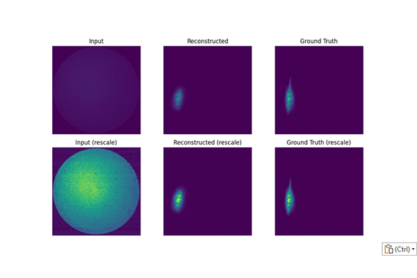 As can be seen in the image below, the pattern at the fibre exit looks very different from the original transverse beam distribution at the screen. Qiyuan is developing machine-learning models to reconstruct the in-situ beam distribution from this speckle pattern, using large synthetic datasets together with experimental measurements and his understanding of fibre propagation.