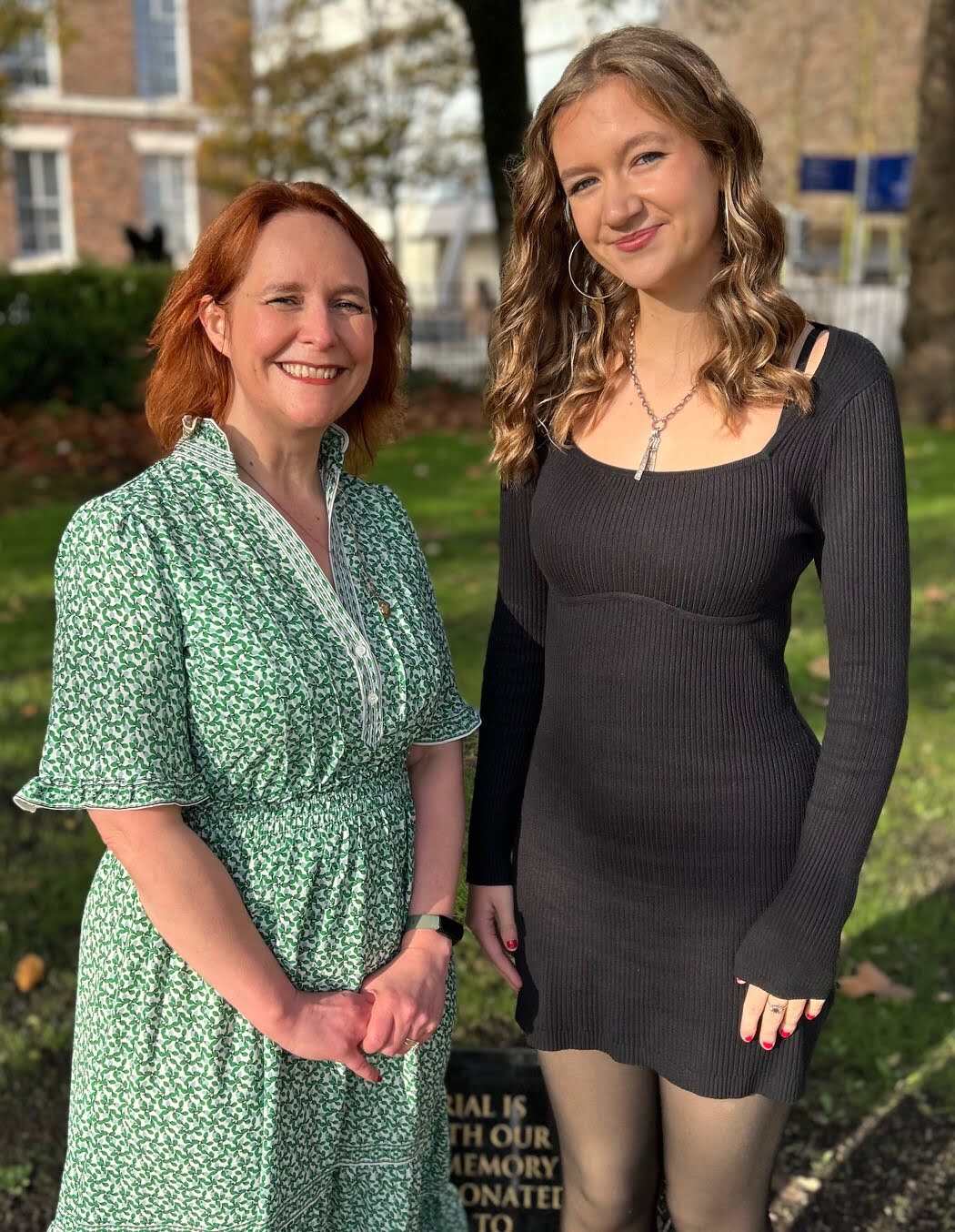 Grace Dimbleby, one of the winners of the Brian Nellist Attainment Scholarship, pictured with Interim Head of English, Dr Melissa Raines