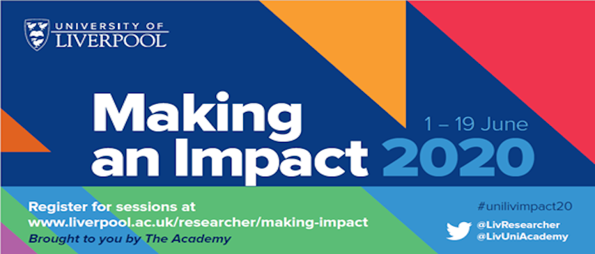 Making an Impact 2020 – sessions open to external research community Making an Impact 2020 (1-19 June) is the University of Liverpool’s annual programme of development opportunities for staff. This year, four sessions are open to the external research community. We hope you will be able to join our four events exploring key research developments and concerns.