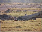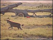 |  Hyena hoping to steal kill |  Hyena waiting...
